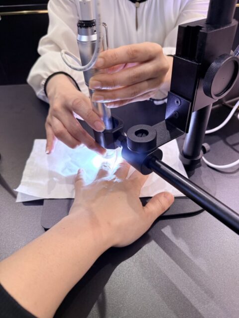 トリートメント前にカウンセリングをしていただき、毛細血管の折り返し地点の状態を見せていただきました。